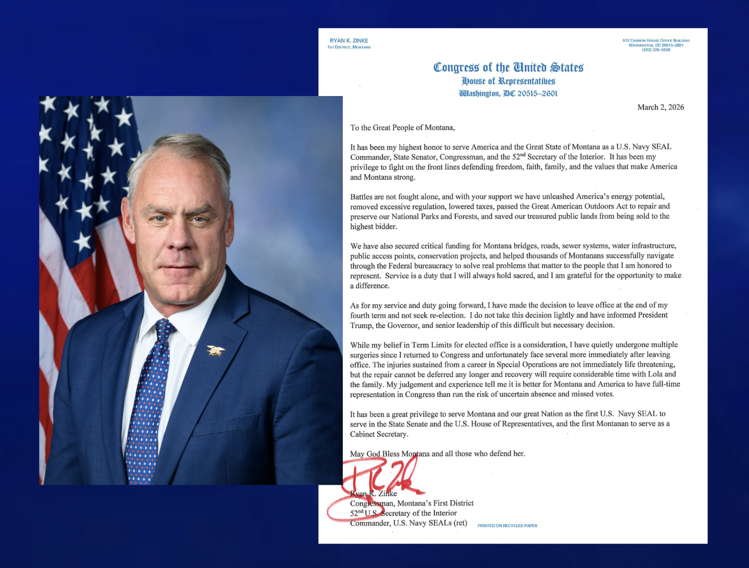 Montana Congressman Ryan Zinke on Monday announced he will not be running for reelection in November, now the 25th House Republican this cycle to get tired of winning and MAGA and shit.