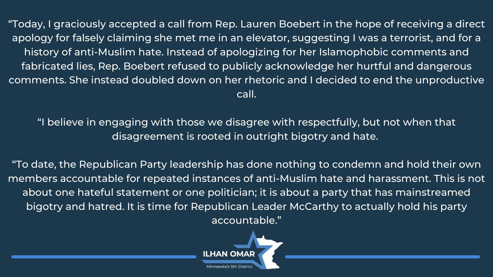 Omar issued her own statement about the interchange: