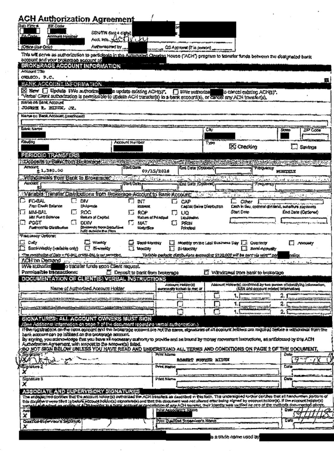 The document, an “ACH Transfer Agreement” that shows this supposedly monthly transfer starting in September 2018, via the Messenger’s Stephen Neukam, actually shows the amount: $1,380.00.