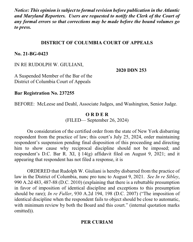 Alcoholic shitbrain Rudy Giuliani has been disbarred in DC for good, per a final ruling Thursday by a Bar Association judge panel, making the indicted former New York City mayor’s morning just slightly less bad than the indicted current New York City mayor’s. At this rate Bill DeBlasio will murder another groundhog and Mike Bloomberg will make only $25 million instead of the usual $35 million.