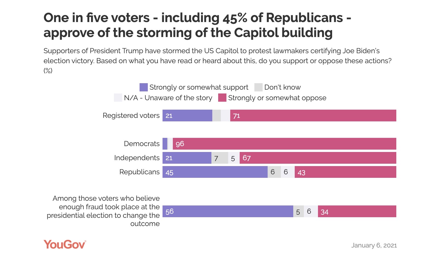 …which is sort of a different take than the one 45 percent of Republican respondents gave to a snap YouGov poll conducted on the evening of January 6, 2021…