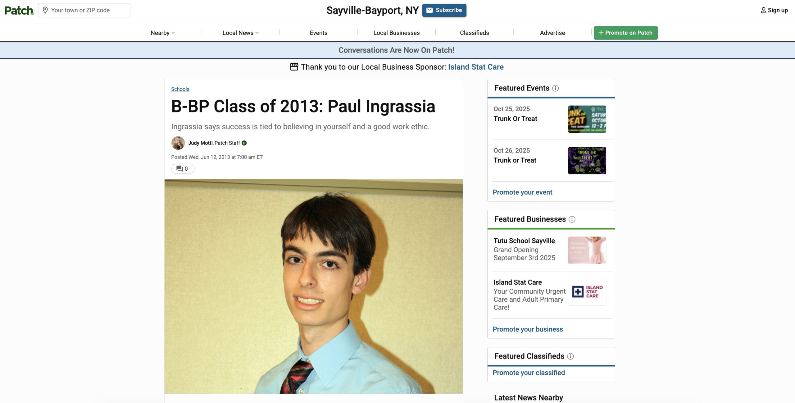In related news, here’s a 2013 Patch.com profile of Ingrassia as one of the top 10 students at a small, unremarkable high school in a small and remarkable district on Long Island’s South Shore: