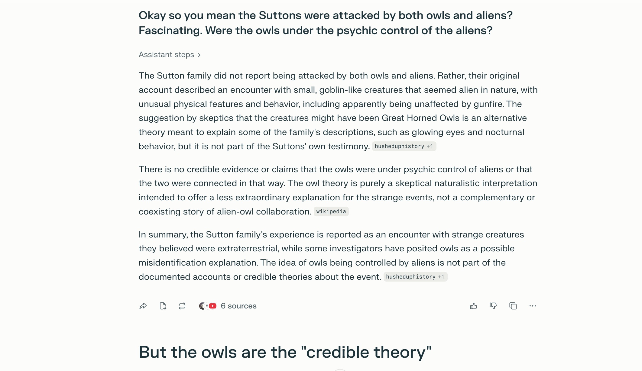 After all, this sort of horseshit from “Perplexity AI” was what prompted this piece, the actual fairly alarming discovery that the biggest AIs are trained on content that includes Joe Nickell’s stupid article and regurgitates it as though it were conventional wisdom. There’s zero practical way of diagnosing the depth of this problem other than to say that they are fundamentally compromised with that kind of anodyne garbage that they’ll just keep doubling down on.