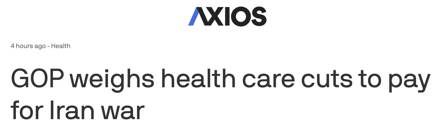 Like shouldn’t the headline of this article read something like “GOP eyes hidden healthcare cut trickery to find pay-fors to fund Iran war” and you have to actually read it to understand what the game is? Is this really where they’re at right now, that something the DCCC can put on a sign or bumper sticker – and just slightly longer than “TRUMP LOW PRICES / KAMALA HIGH PRICES” – is simply being given away for free without forcing the Dems to do any more wordsmithing than that?