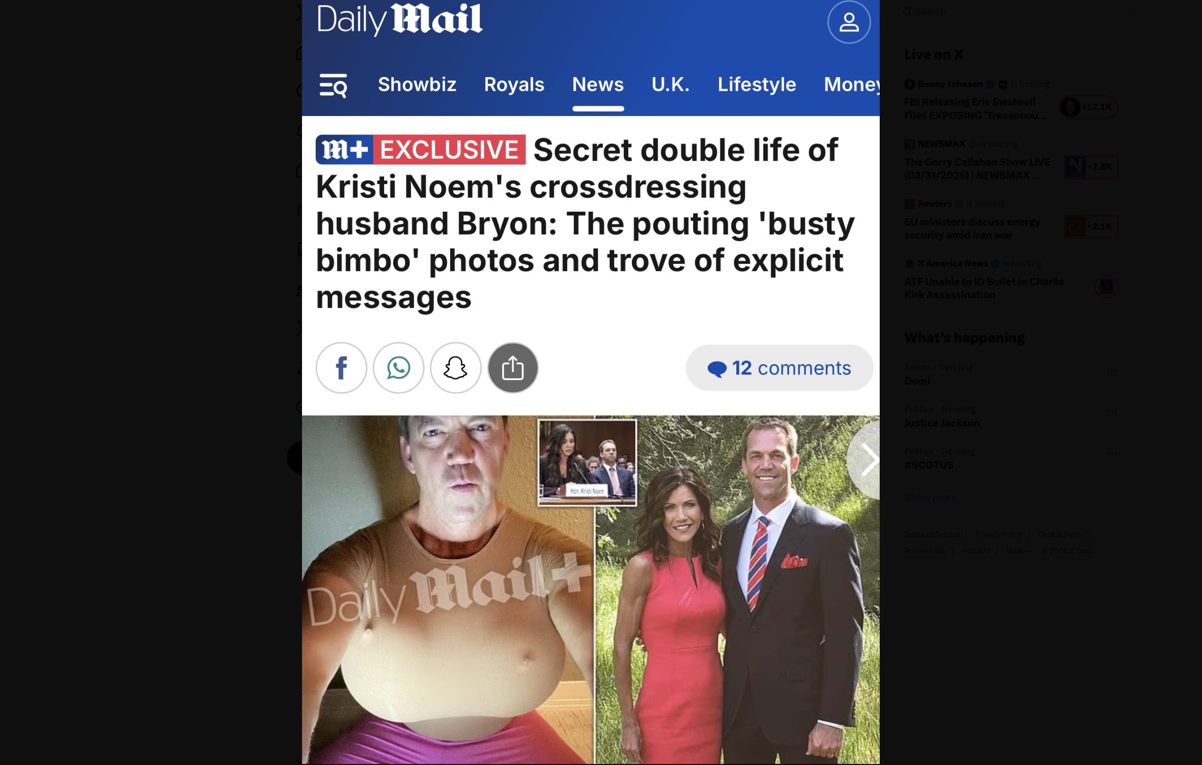 Anyway the Mail also raises that Bryon’s kink was a national security risk because someone could have blackmailed Kristi with these photos. Unraised is the distinct probability that someone in the government was already blackmailing her with these photos and now that she’s out there’s no more value left other than to dump them on these eager whelps and embarrass Byron and Kristi anyway.